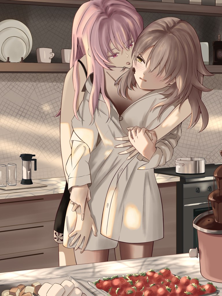 S: Nngh, K-Kafka, that’s enough.K: Hmm~ there’s still some left, let me get them all off for you ❤